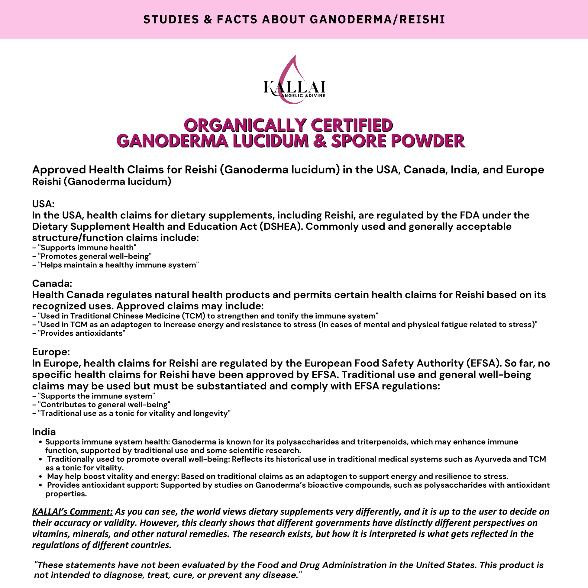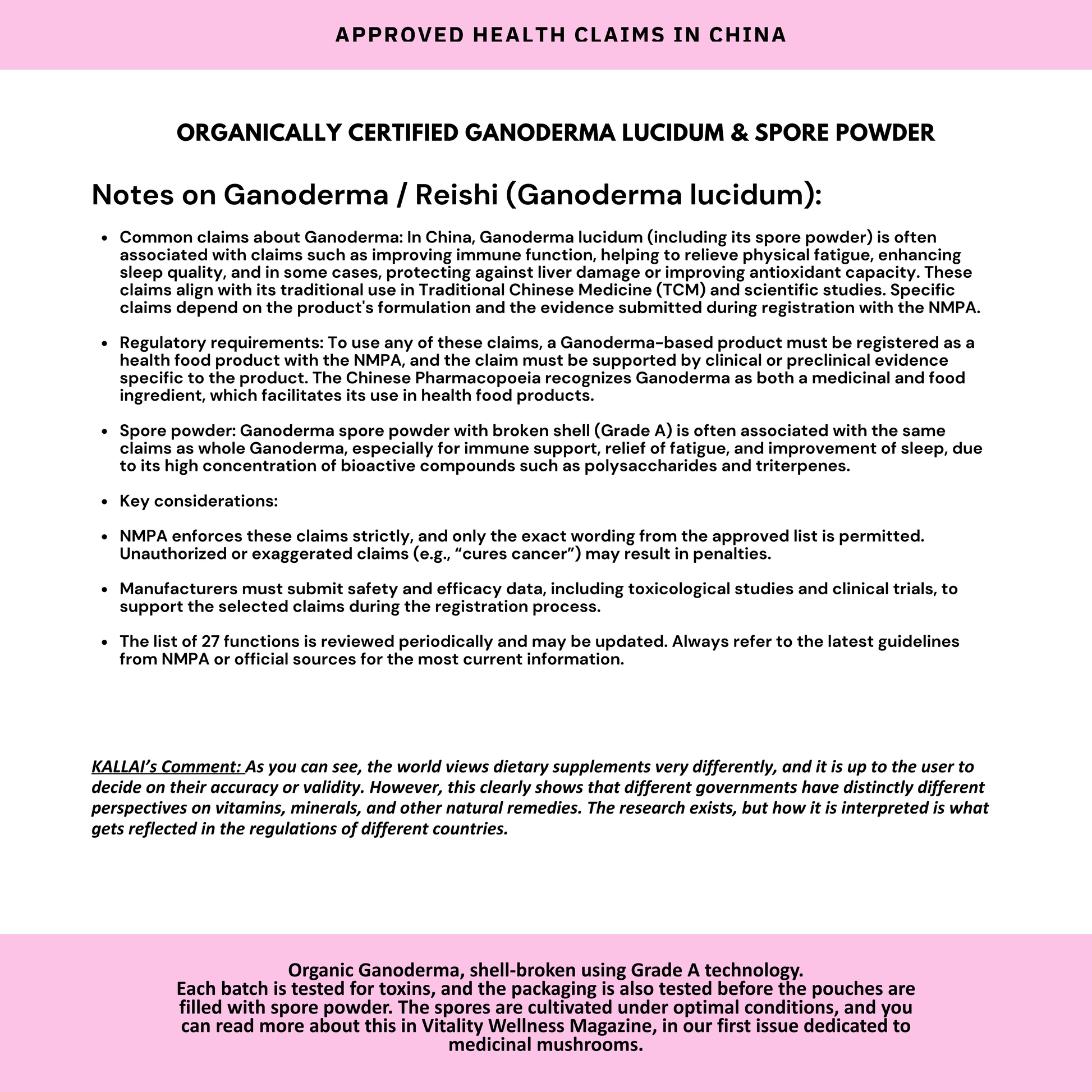 Ingredients: Reishi Mushroom Extract (Ganoderma Lucidum), Hot Water Extract, Purified Water