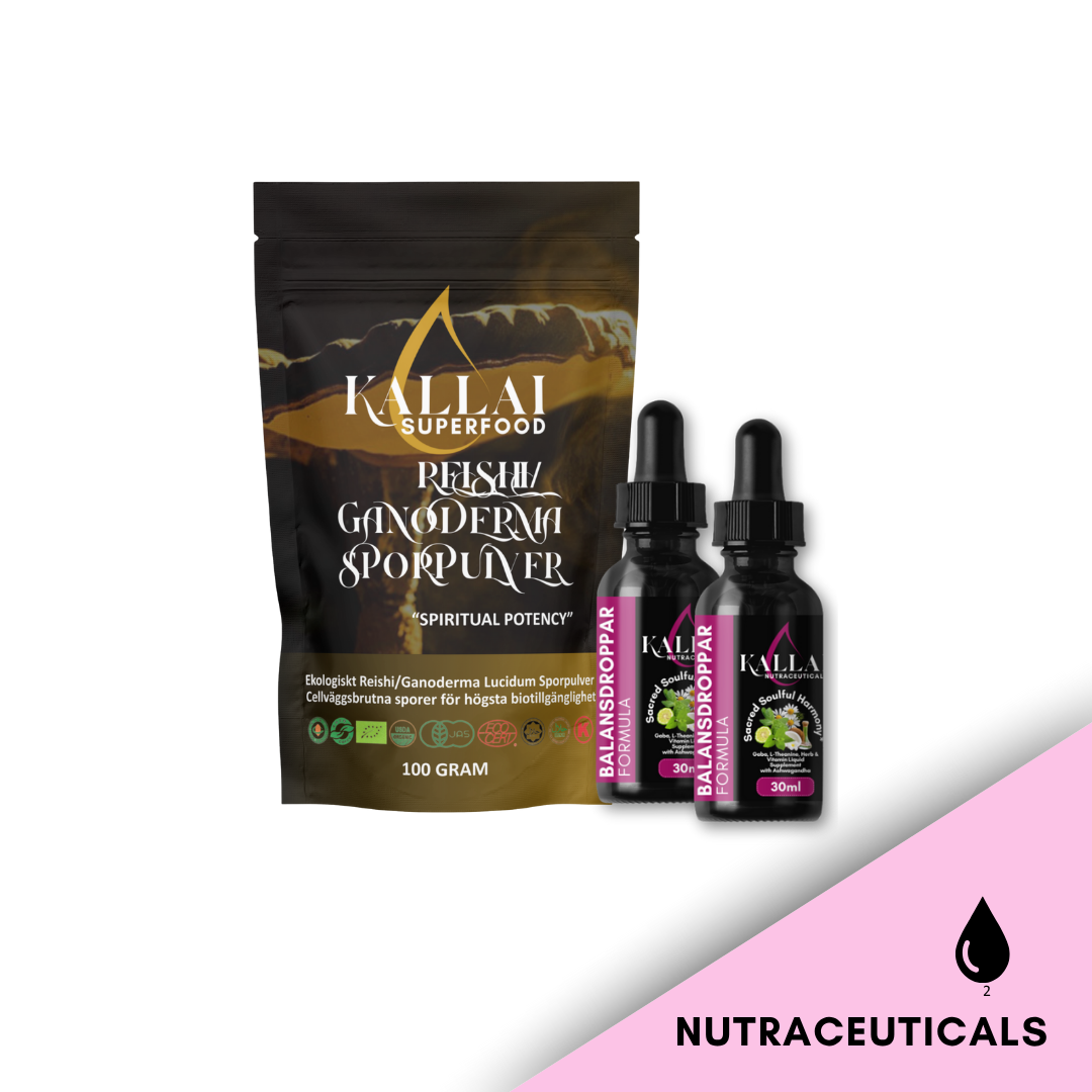 Detta exklusiva set innehåller Balansprotokollet samt gratis ekologiska Ganoderma Lucidum Droppar (30 ml) och Gano Kaffe (100 g) — noggrant utformade för att stödja balans, fokus och naturlig vitalitet inifrån och ut.