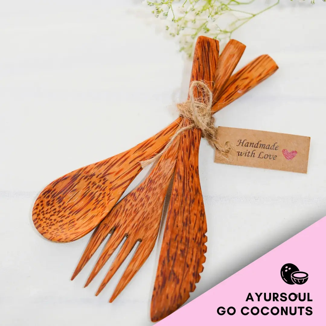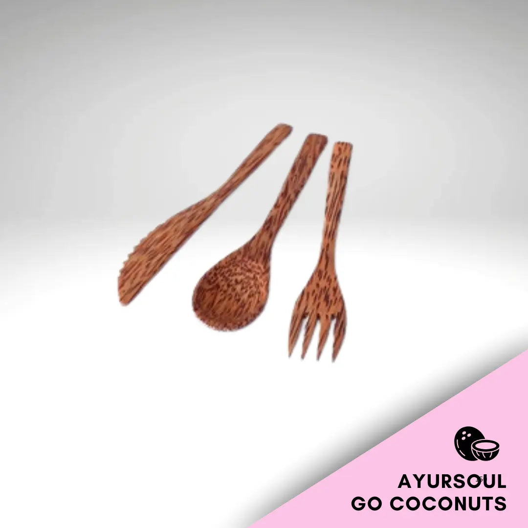 Elevate your table with naturally beautiful coconut wood cutlery. This compact 16 cm set includes a spoon, fork, and knife—smooth to the touch, gentle on cookware, and comfortable to hold. Ideal for daily meals, lunchboxes, picnics, and eco-conscious dining. Each piece showcases unique grain patterns, bringing warm, earthy character to any setting.