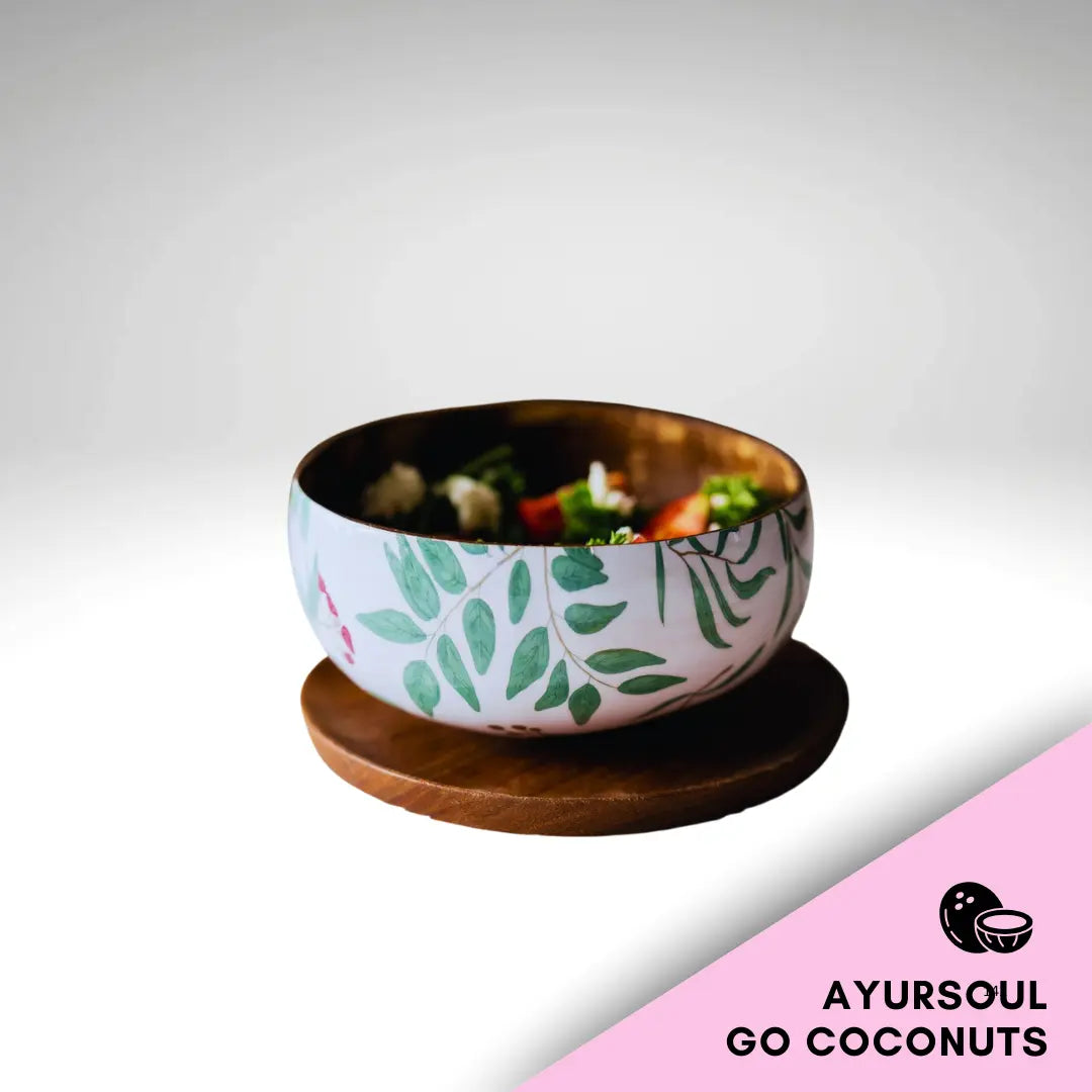 - Material: Natural coconut shell exterior + enamel-coated interior