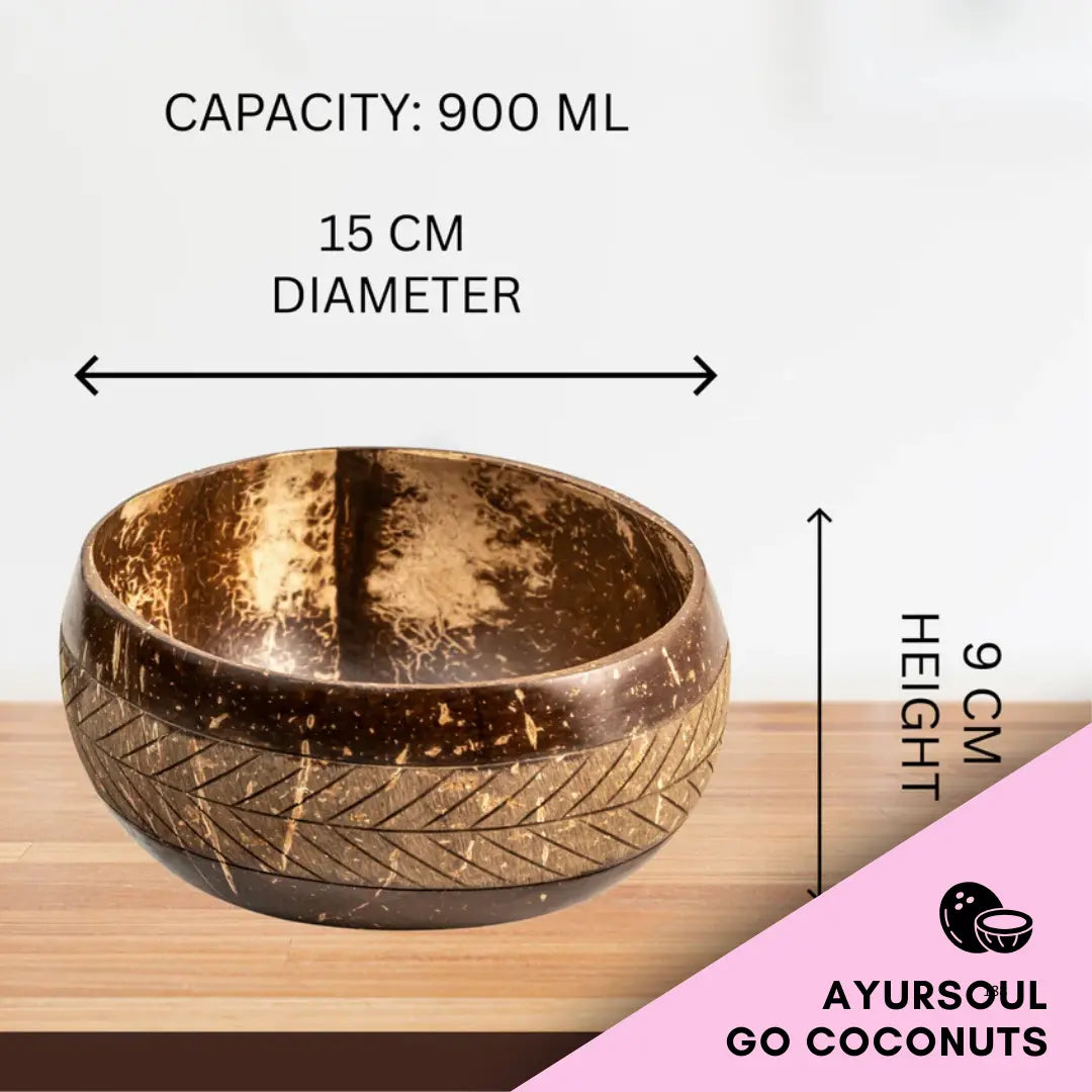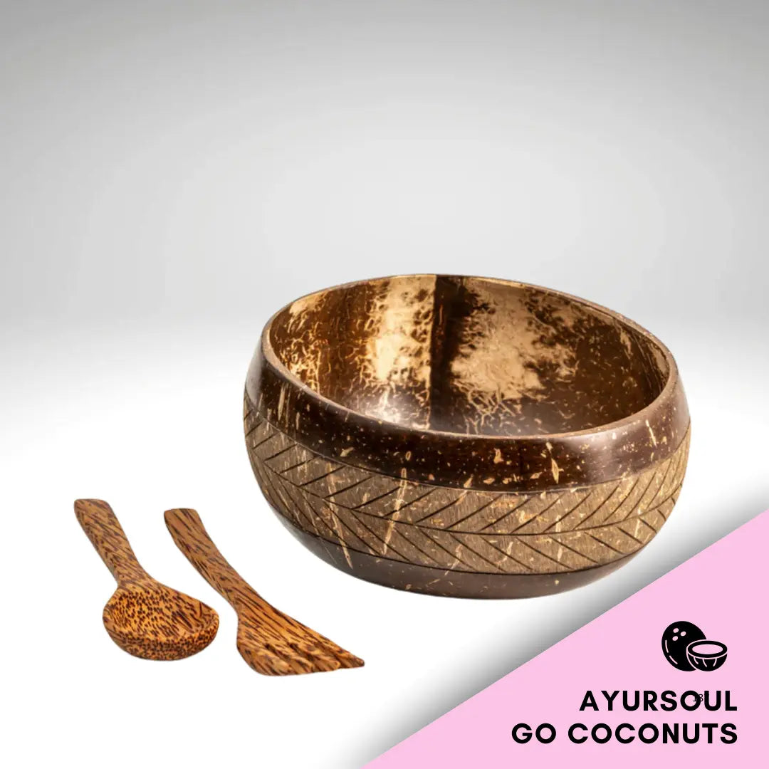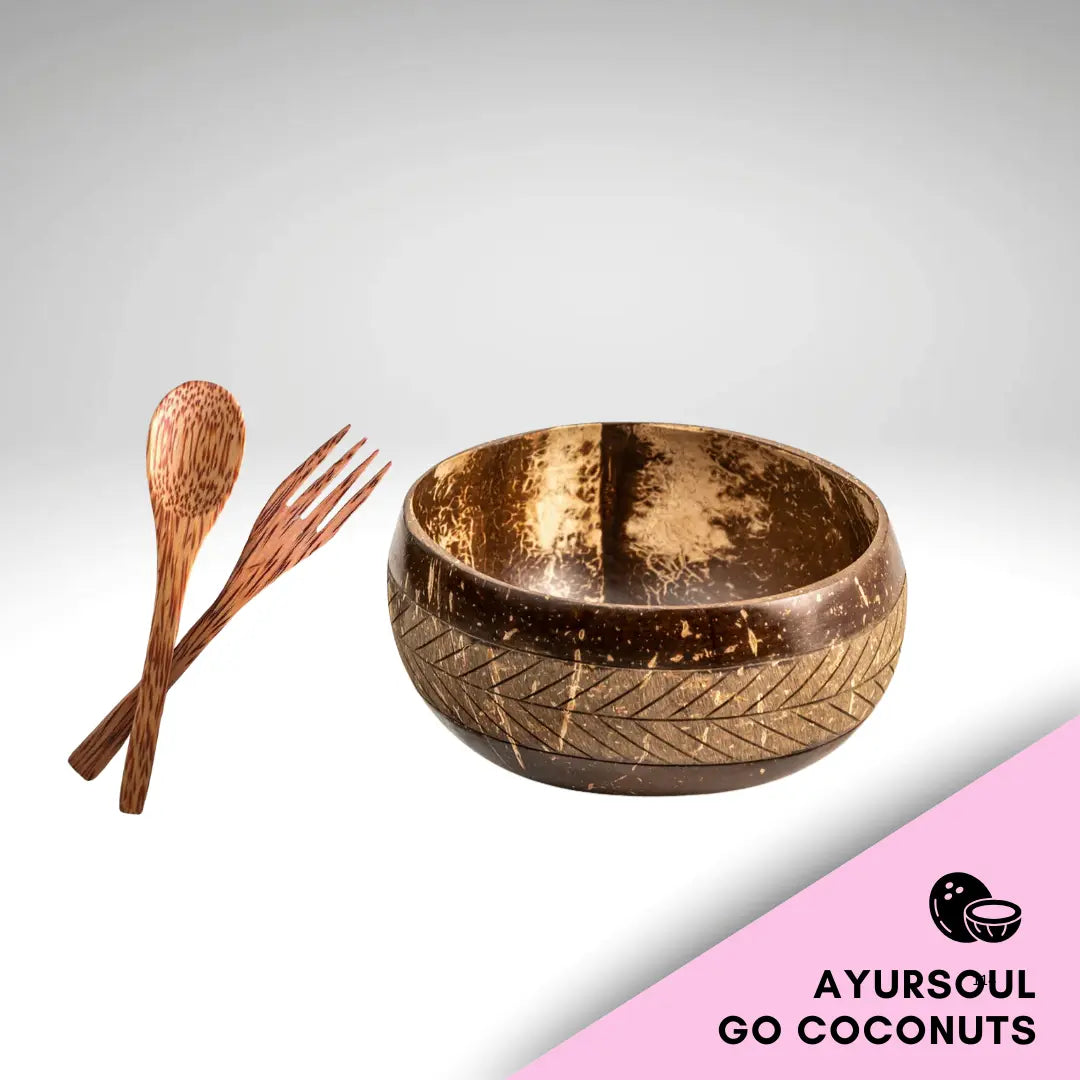 NATURES MÖNSTRAD SKÅL + BESTICK – Modernt kokosset (14–15 cm × 7–8 cm)