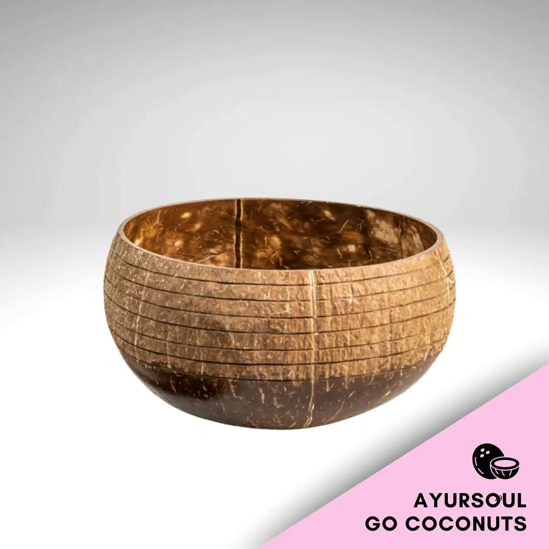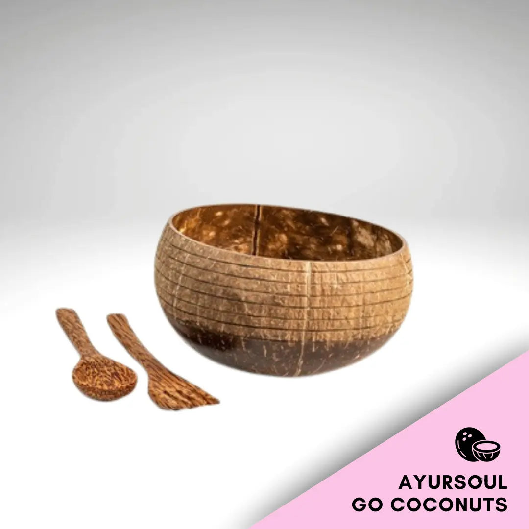 - Includes: 1 ring-pattern coconut bowl, 1 coconut spoon, 1 coconut fork