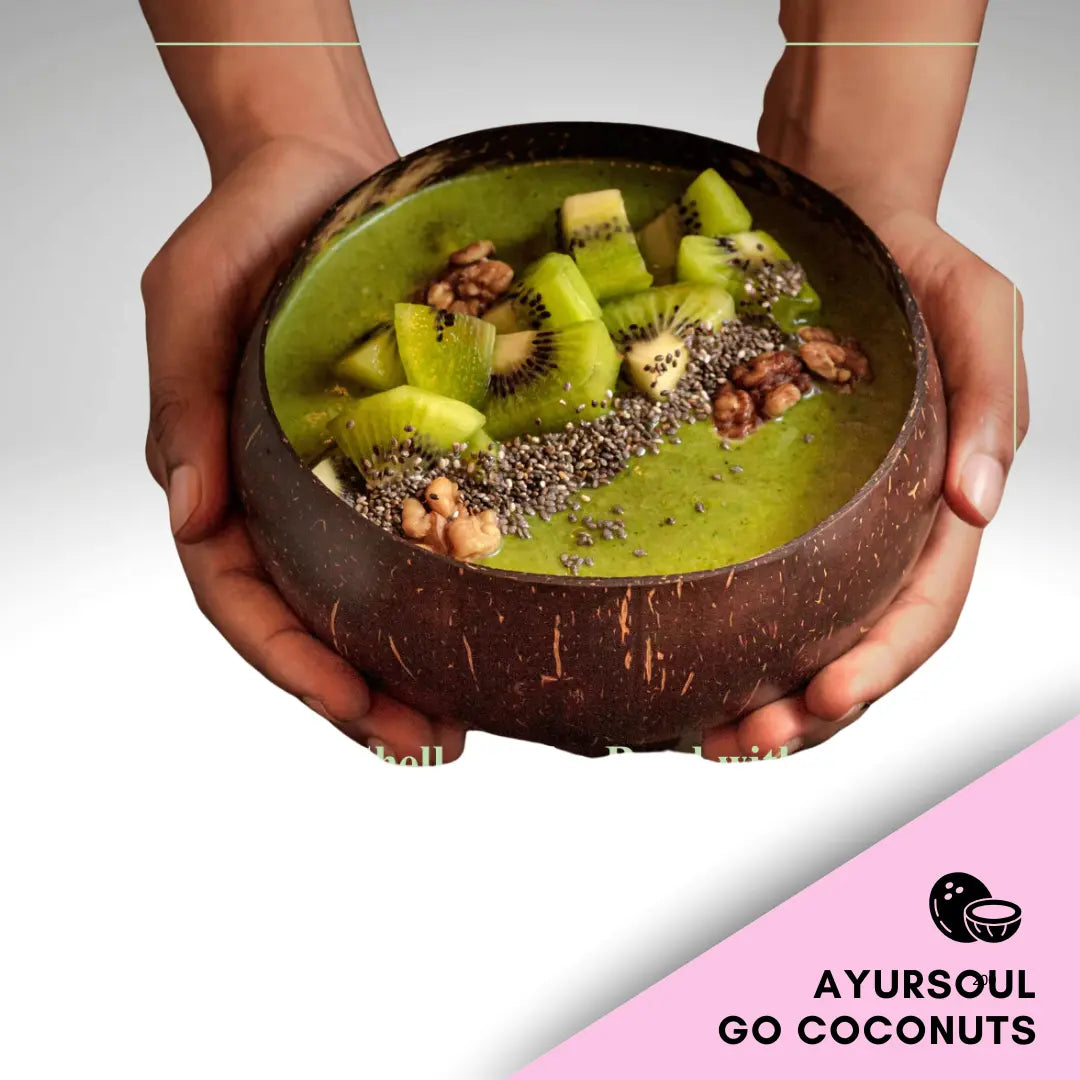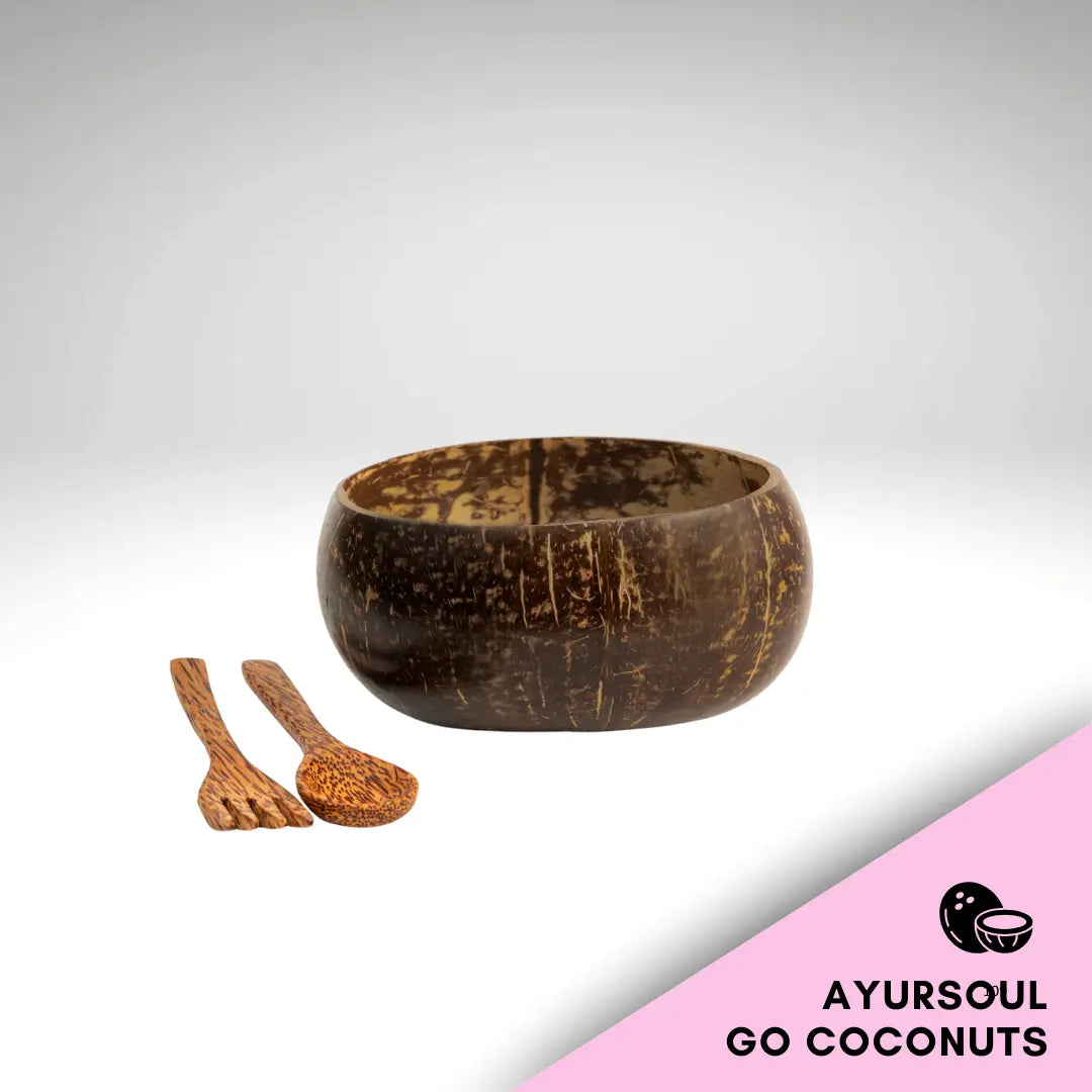 NATURES STOR SKÅL + BESTICK – Överdimensionerat naturkokos-set (14–15 cm × 7–8 cm)